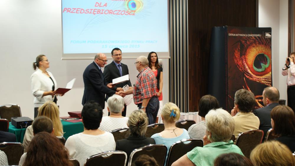 W Forum Podkrakowskiego Rynku Pracy wzięli udział przedsiębiorcy z terenu Powiatu Krakowskiego, którzy otrzymali dofinansowanie na stworzenie nowych firm i miejsc pracy. Osoby, które otrzymały dotacje zaprezentowały swoje przedsiębiorstwa, wymieniały doświadczenia, oferowały swoje produkty i usługi na stoiskach wystawienniczych. Ponadto podsumowano rozwój przedsiębiorczości w powiecie za rok 2014 i zorganizowano konsultacje dla pracodawców. Na koniec Starosta Krakowski uroczyście wręczył przedsiębiorcom listy gratulacyjne.