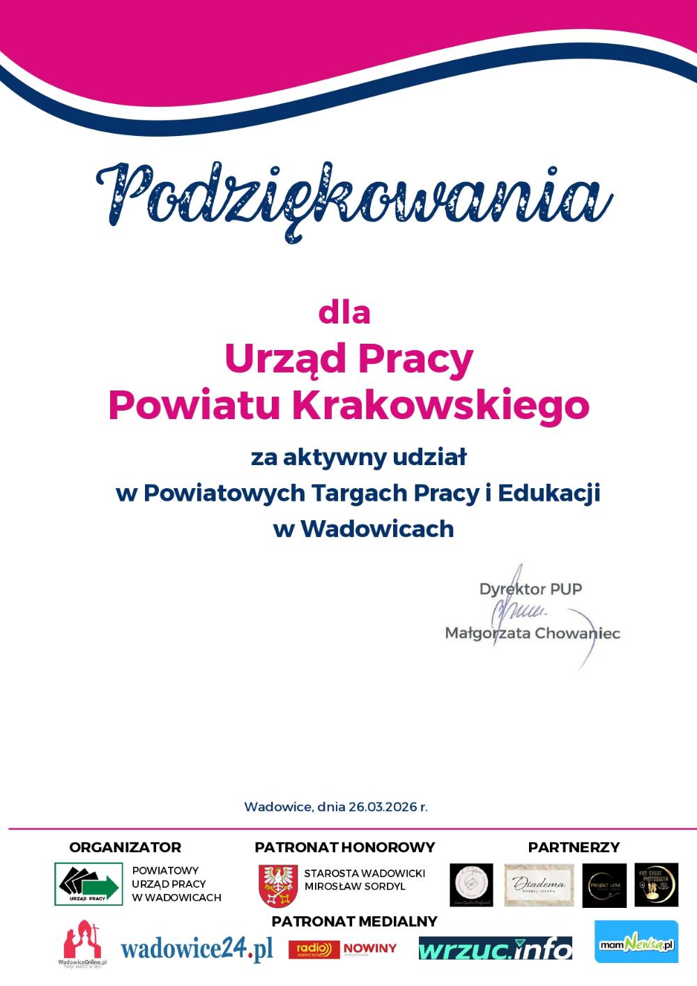 Nagrody, wyróżnienia i podziękowania - Urząd Pracy Powiatu Krakowskiego